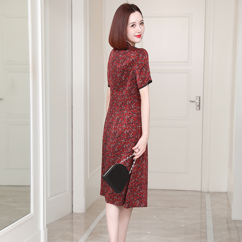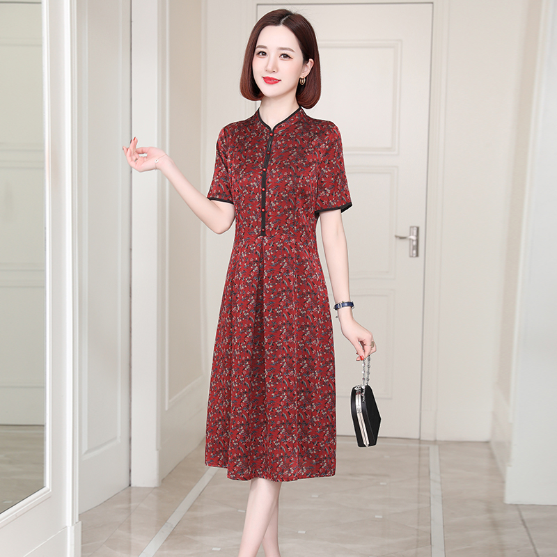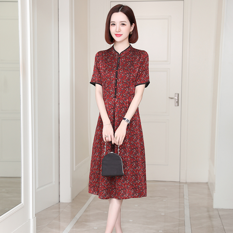 新款高端杭州真丝连衣裙女改良旗袍重磅中老年妈妈桑蚕丝裙子夏季