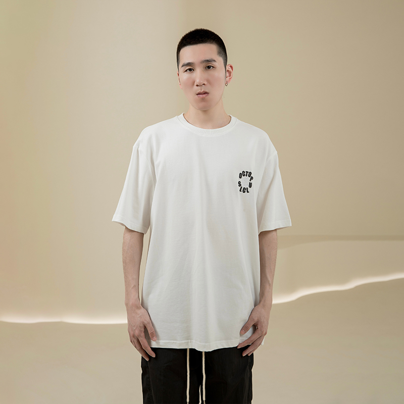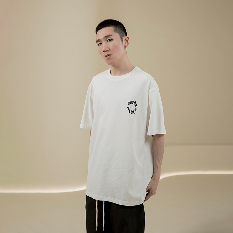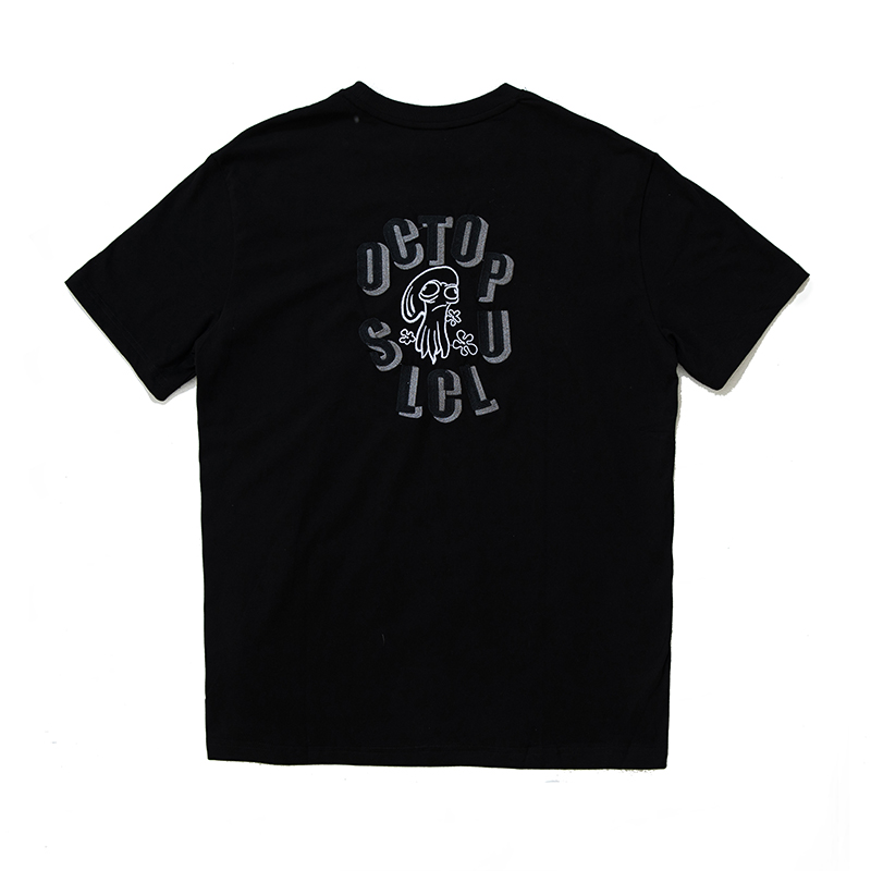 烦恼的Octopusl夏季圆领章鱼刺绣T恤嘻哈宽松休闲男女短袖T恤衫潮