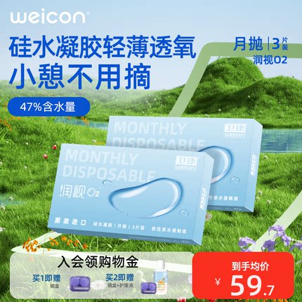 卫康润视O2硅水凝胶月抛3片隐形眼镜透明片水润舒适近视眼镜