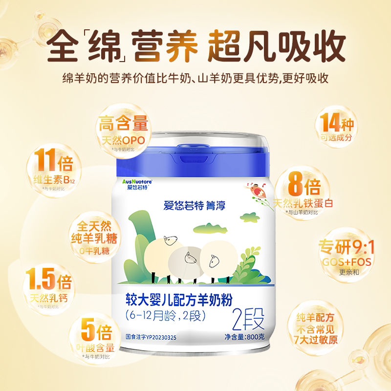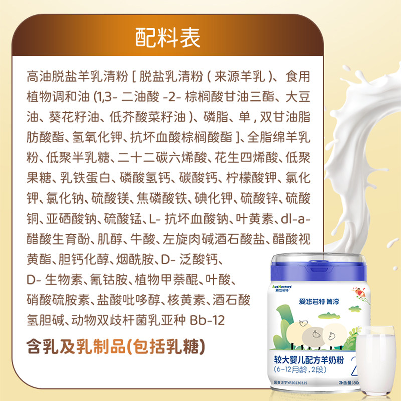 【绵羊奶粉】爱悠若特箐淳2段较大婴儿配方羊奶粉二段幼儿婴幼儿