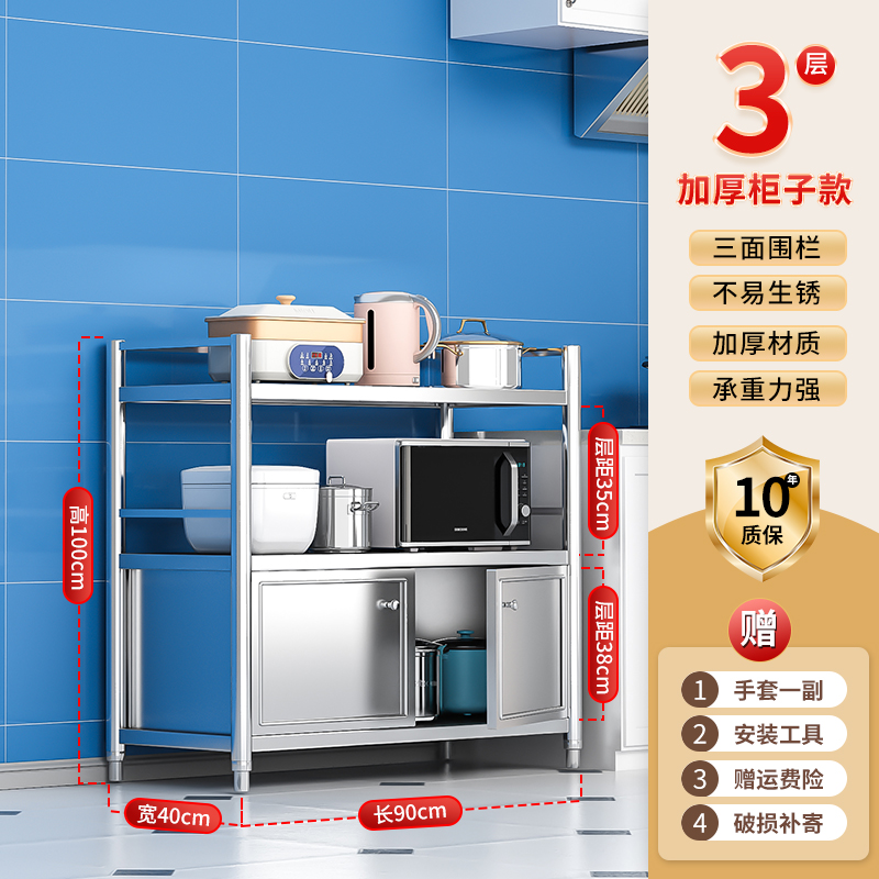 新厨房置物架多层收纳落地储物带门货架柜子不锈钢微波炉架柜式橱