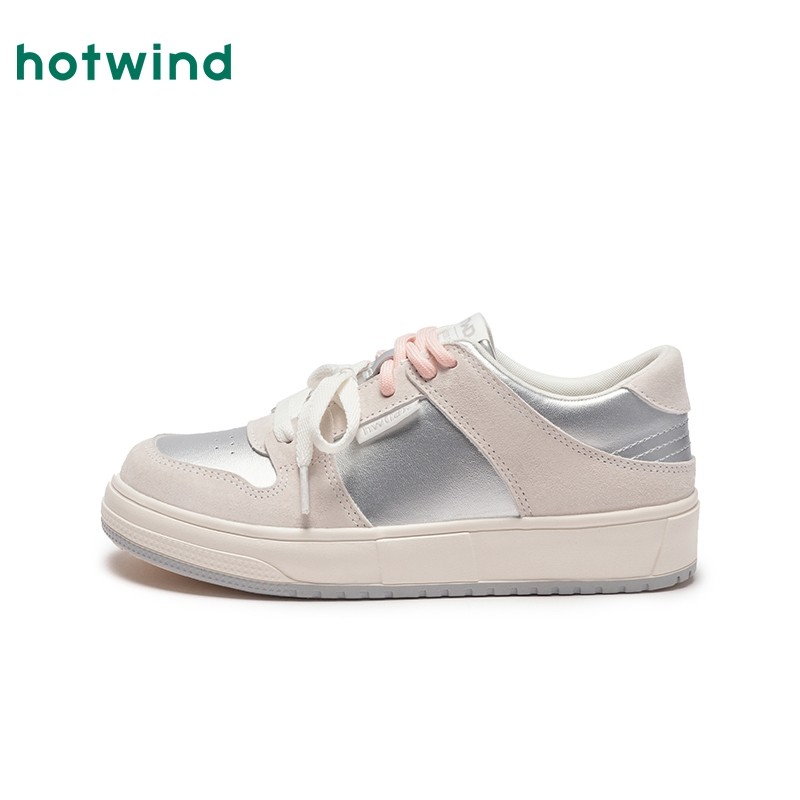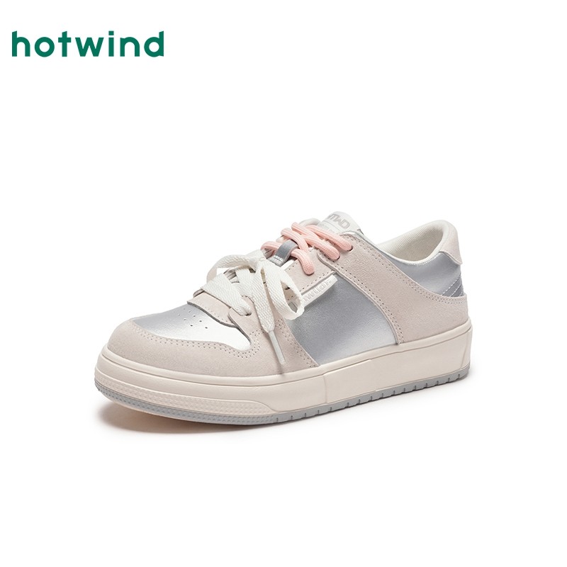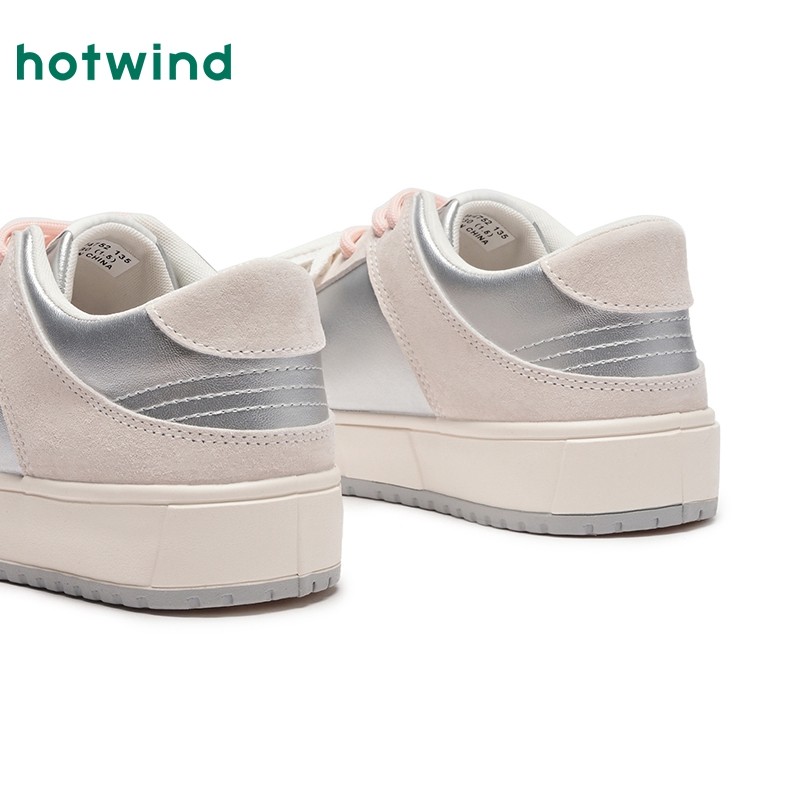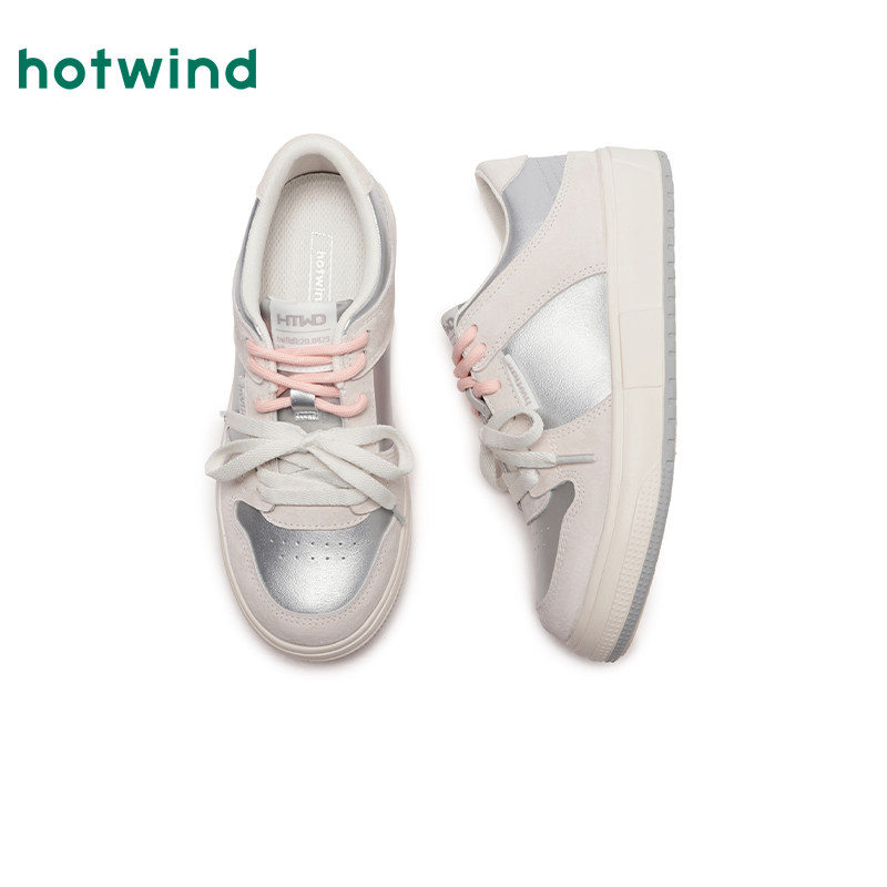 热风秋季新款女士时尚拼色休闲鞋松糕底板鞋户外运动小白鞋