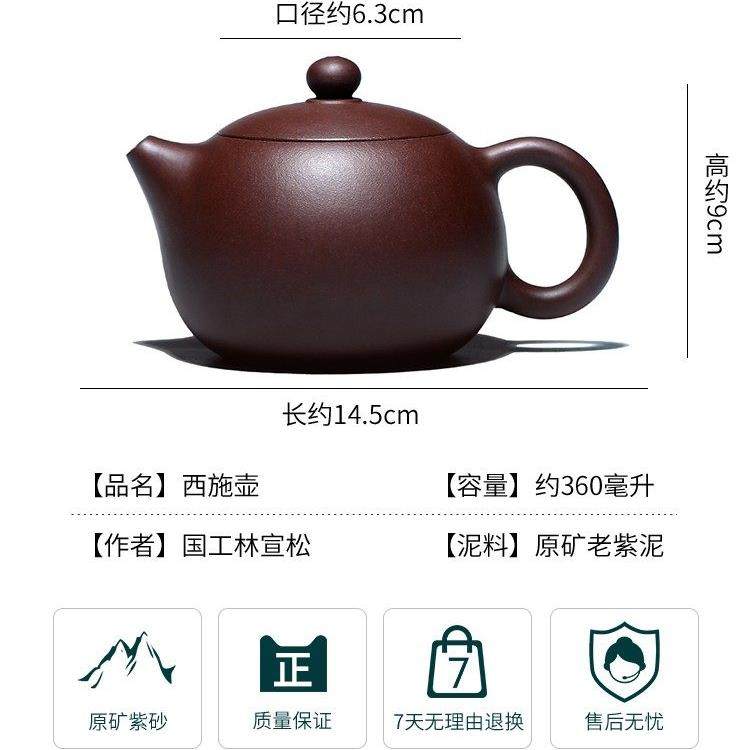 宜兴紫砂壶纯全手工国工名家茶壶大容量礼品原矿老紫泥球孔西施壶