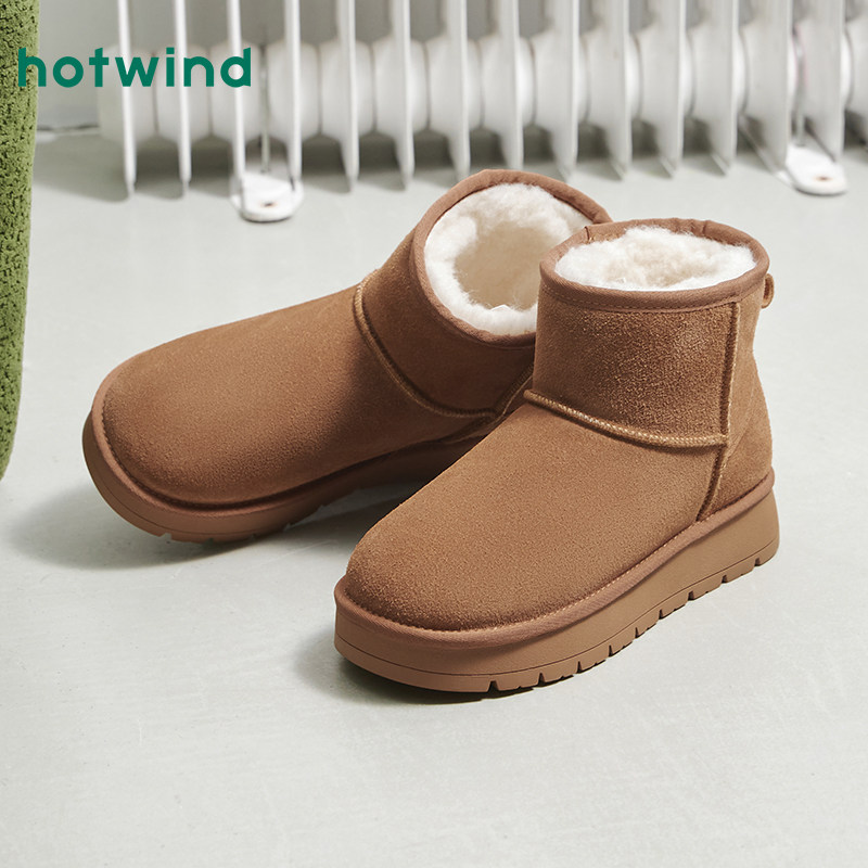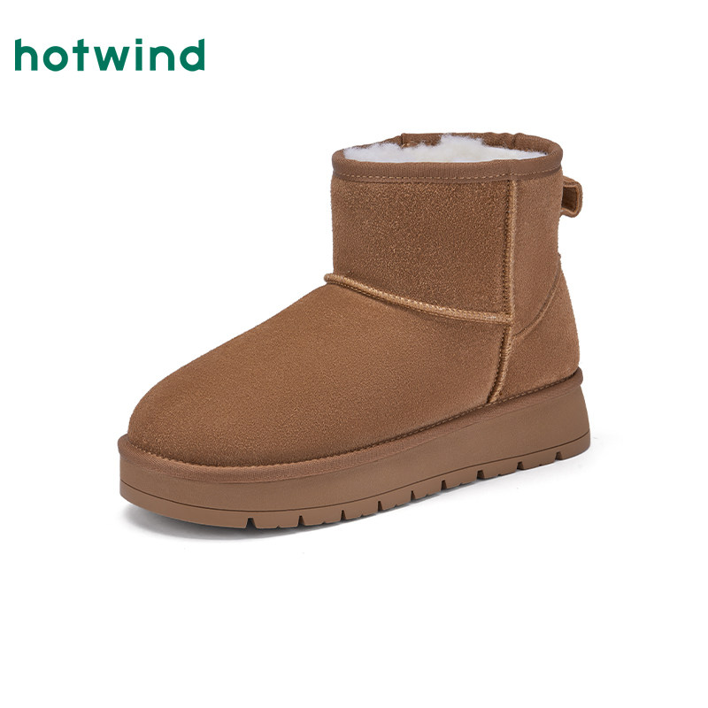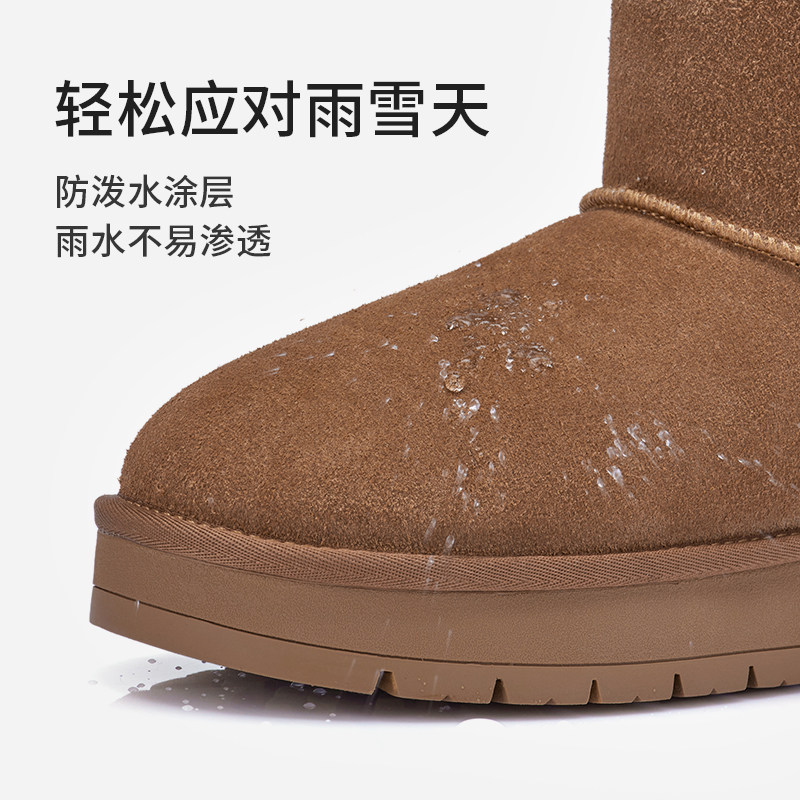 热风加绒雪地靴女鞋2025年冬季新款加厚保暖短筒靴户外棕色棉鞋