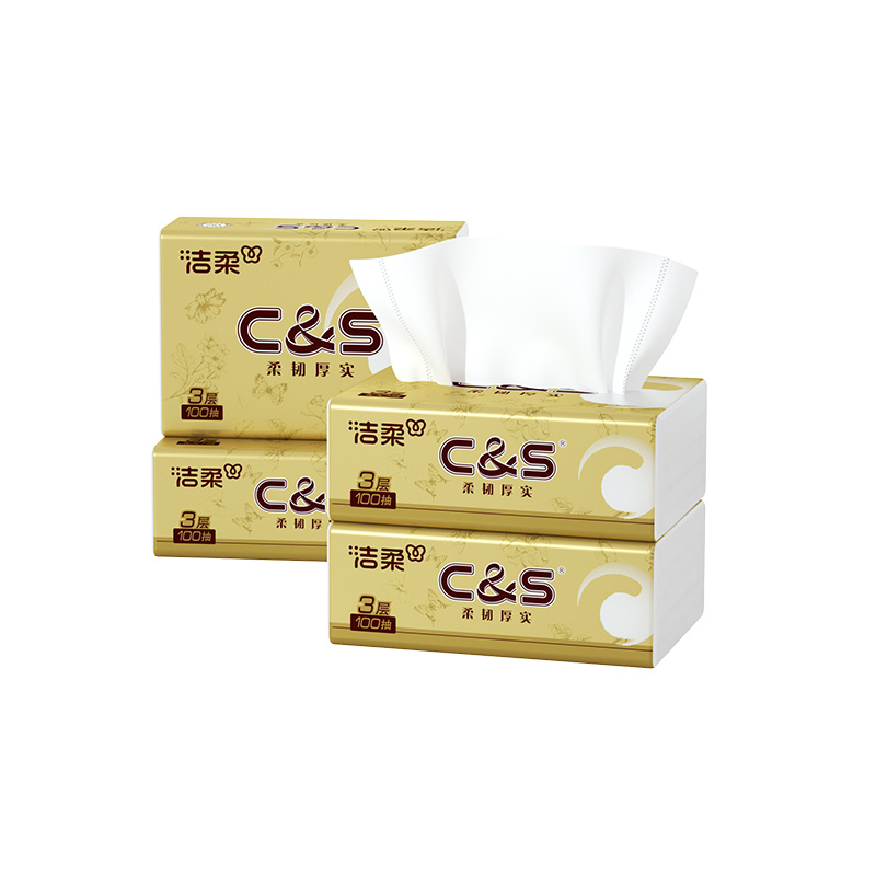 洁柔金尊无香抽纸纸巾卫生纸餐巾纸100抽4包擦手纸家用实惠装