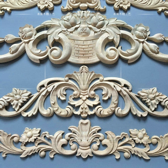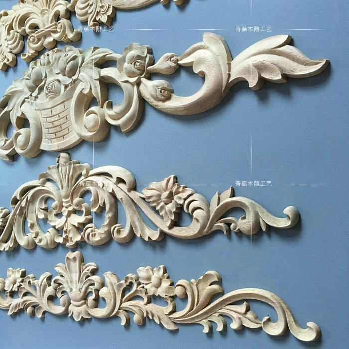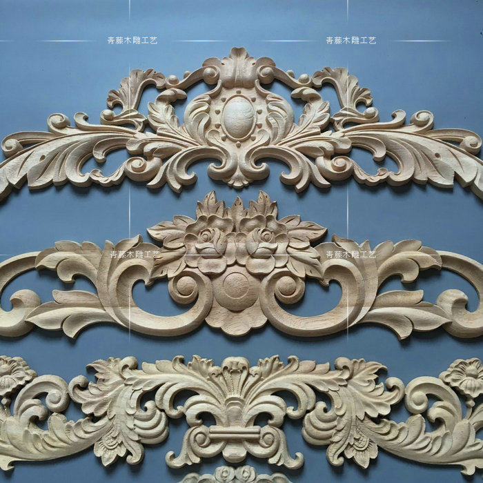 东阳木雕贴花欧式花片中式实木花格客厅背景墙装饰实木角花雕花