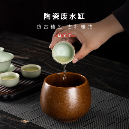 高端茶洗茶渣缸陶瓷建水小大号水盂废水桶烟灰缸茶具配件茶水缸
