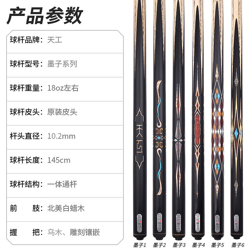 天工墨子12345一二三四五台球杆手工杆桌球杆小头杆黑八南匠球杆