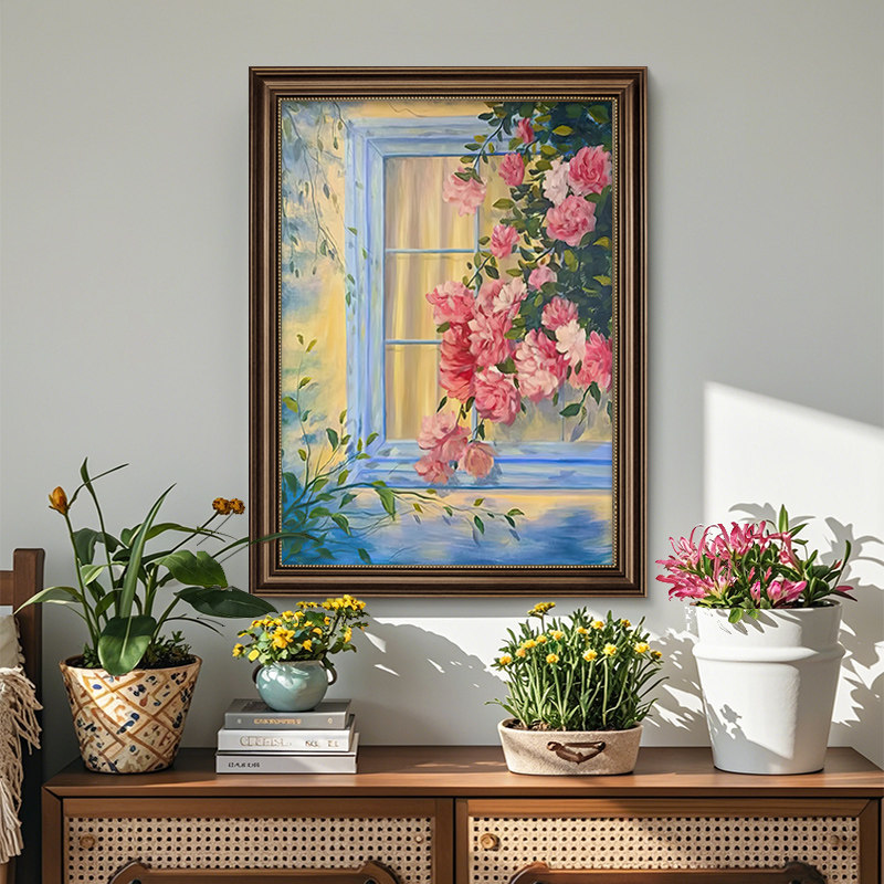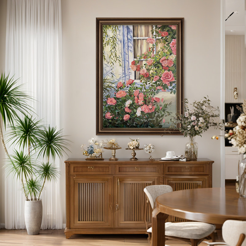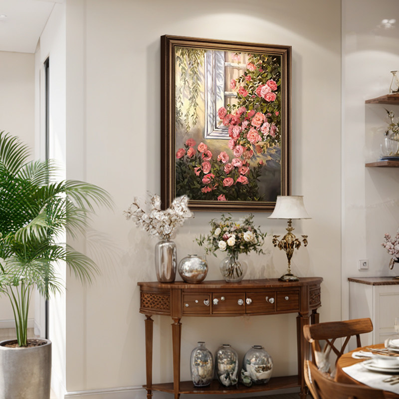 美式复古花卉玄关装饰画高端餐厅风景油画走廊过道挂画轻奢高级感