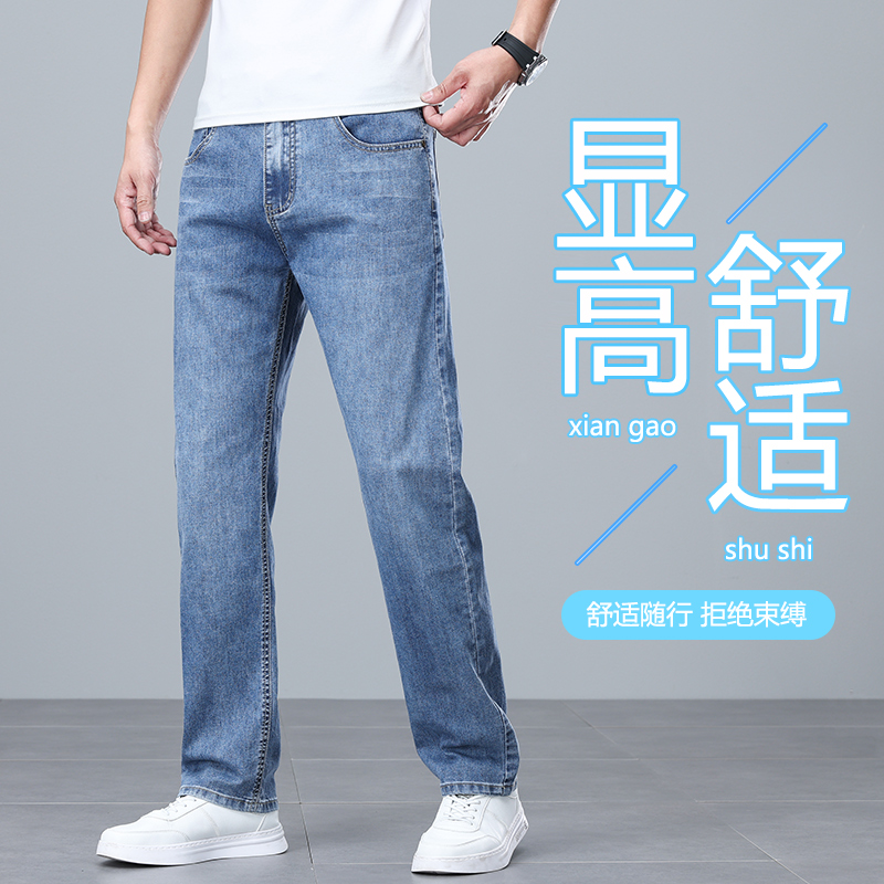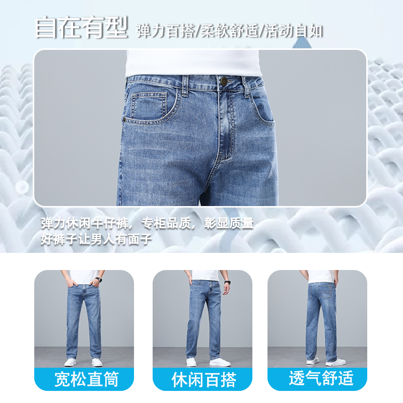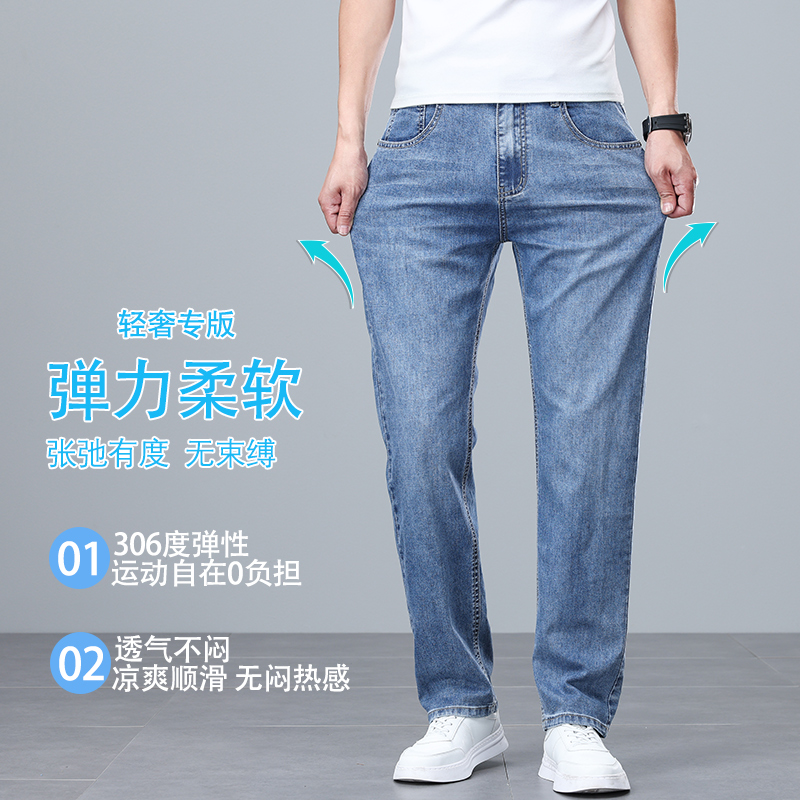 罗蒙天丝牛仔裤男2025新款夏季薄款宽松直筒弹力商务休闲中高腰裤