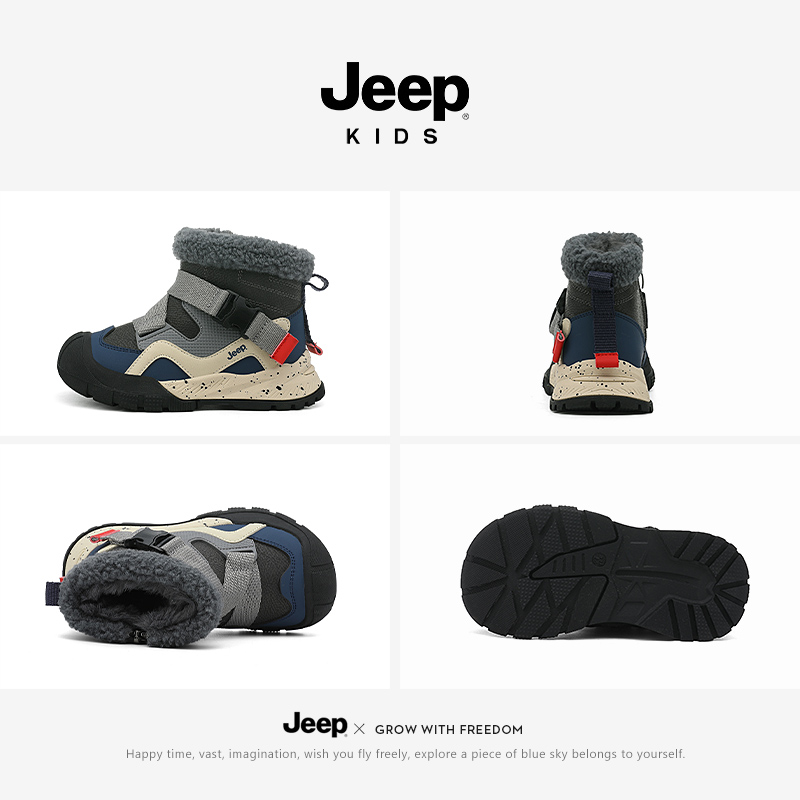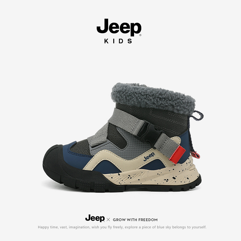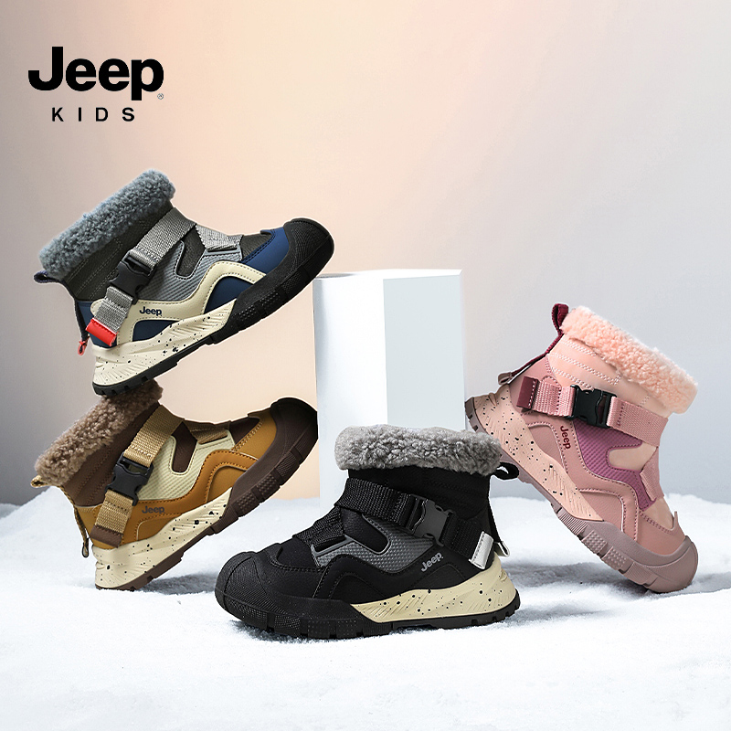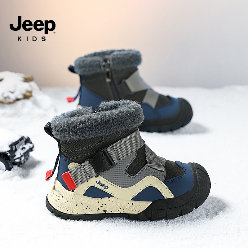 jeep儿童雪地靴男童棉鞋2025冬季新款雪地鞋加绒防水防滑女童棉靴