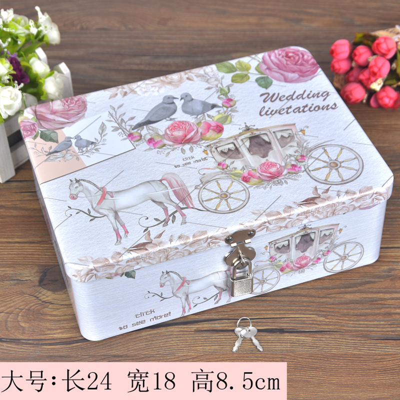 收纳盒带锁桌面收纳铁盒子化妆品证件学生文具盒小铁箱子密码钥匙