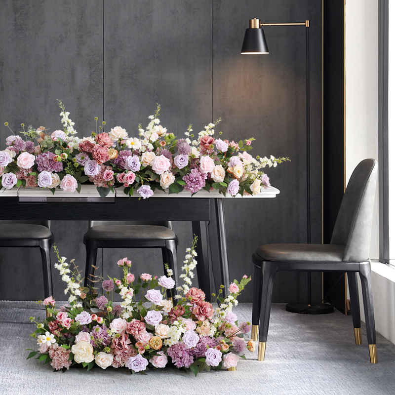 婚礼花艺舞台路引花婚庆排花现场布置玫瑰桌花美陈摆放仿真绢花