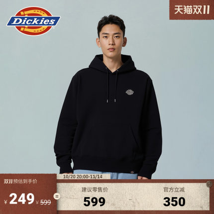 Dickies25秋冬帽子大LOGO刺绣设计毛圈内里休闲连帽卫衣男女情侣