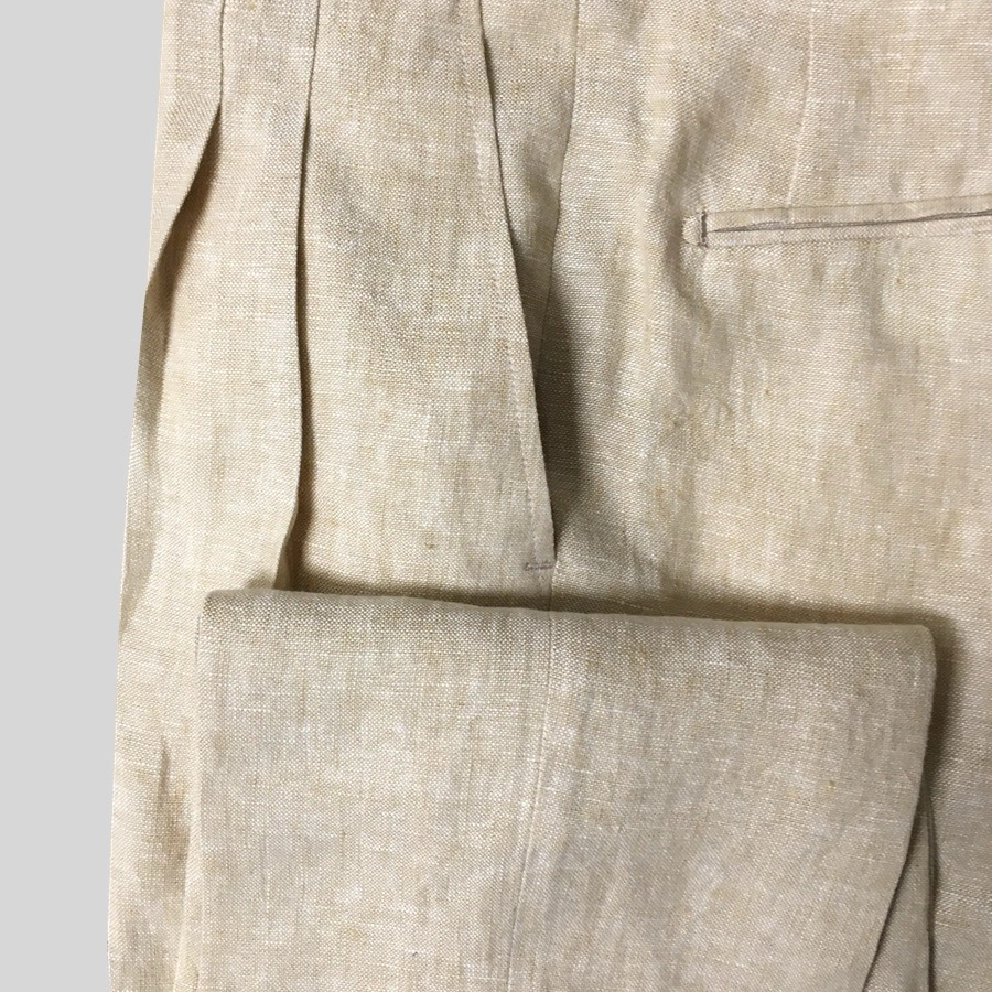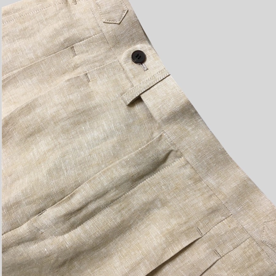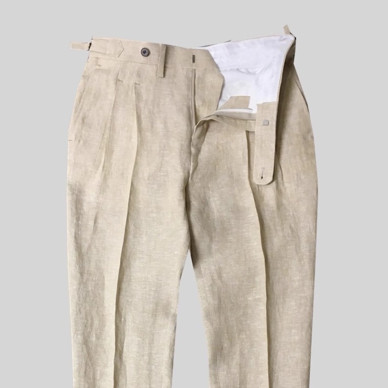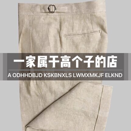 夏季男士高个子卡其色亚麻宽松直筒那不勒斯直筒西裤 巴黎扣 休闲