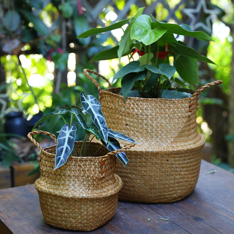 Kens北欧海草编织花篮客厅琴叶花盆摆件草编手提篮收纳袋家居