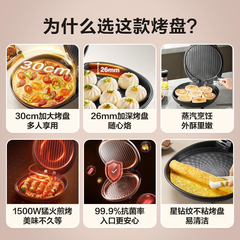 苏泊尔电饼铛家用双面加热烙饼锅煎薄饼机煎烤机自动加深加大神器