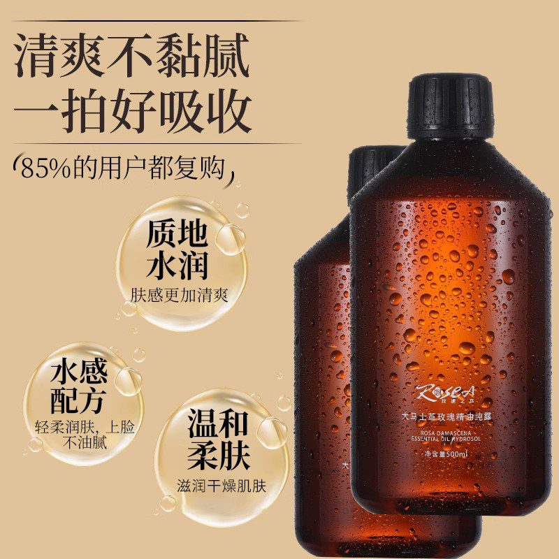 天然玫瑰纯露原液湿敷爽肤补水喷雾大马士革玫瑰花水大瓶官网正品