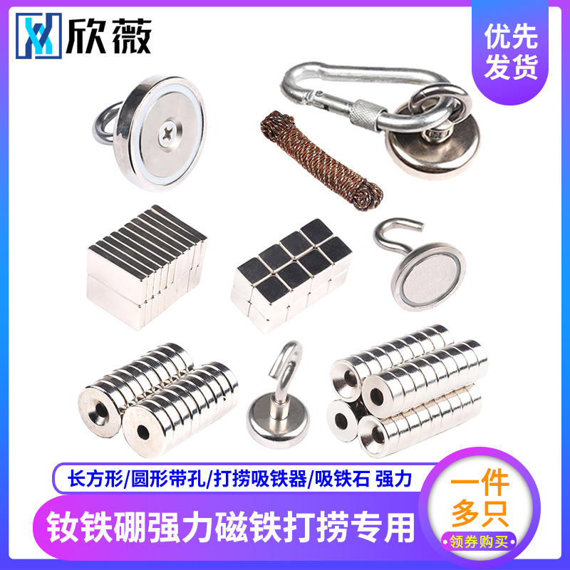 强力磁铁超强钕铁硼吸铁石高强圆形带孔长方形铷汝强磁打捞吸铁器