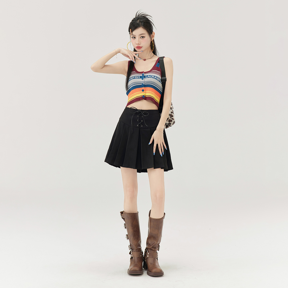 LA CRAWFISH2024新款辣妹风绑带百褶裙a字高腰显瘦百搭短裙半身裙