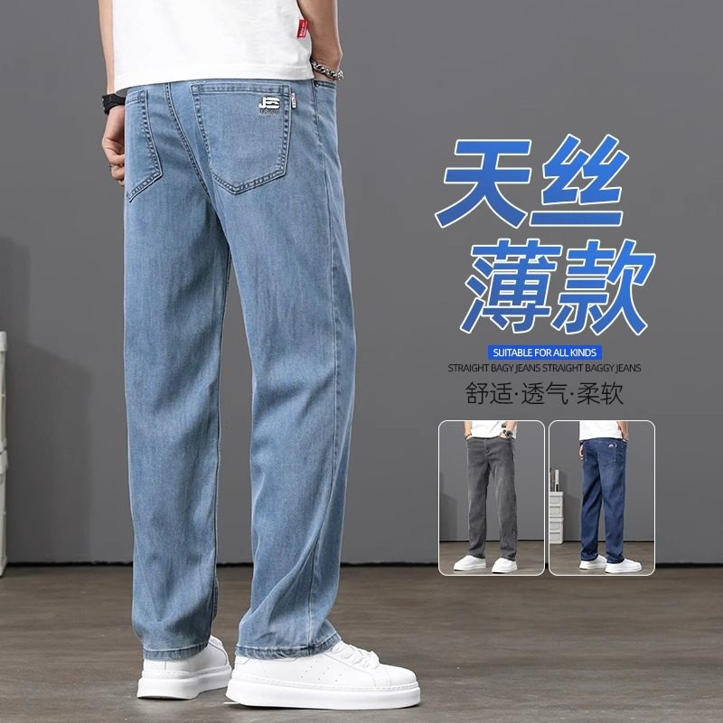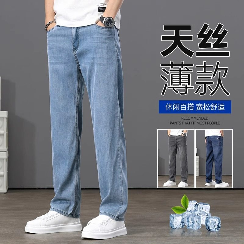 2025夏季薄款冰丝牛仔裤男士宽松直筒男裤高端天丝弹力休闲长裤子