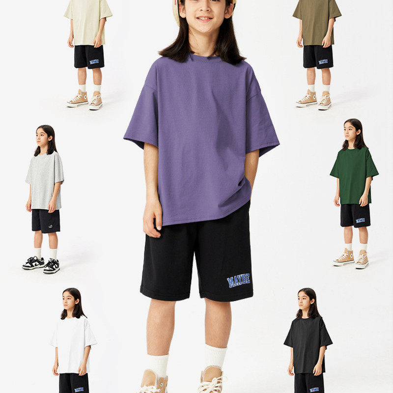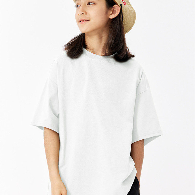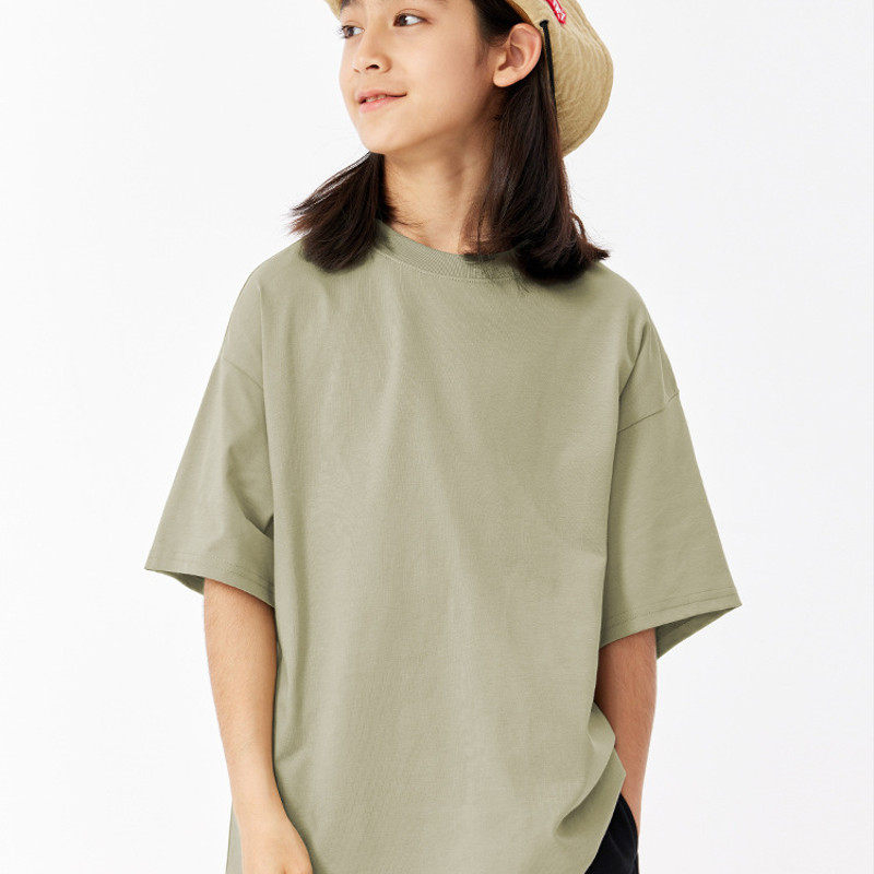 夏季户外凉感男女童纯色短袖T恤中大童速干防晒亲子装