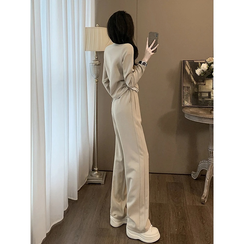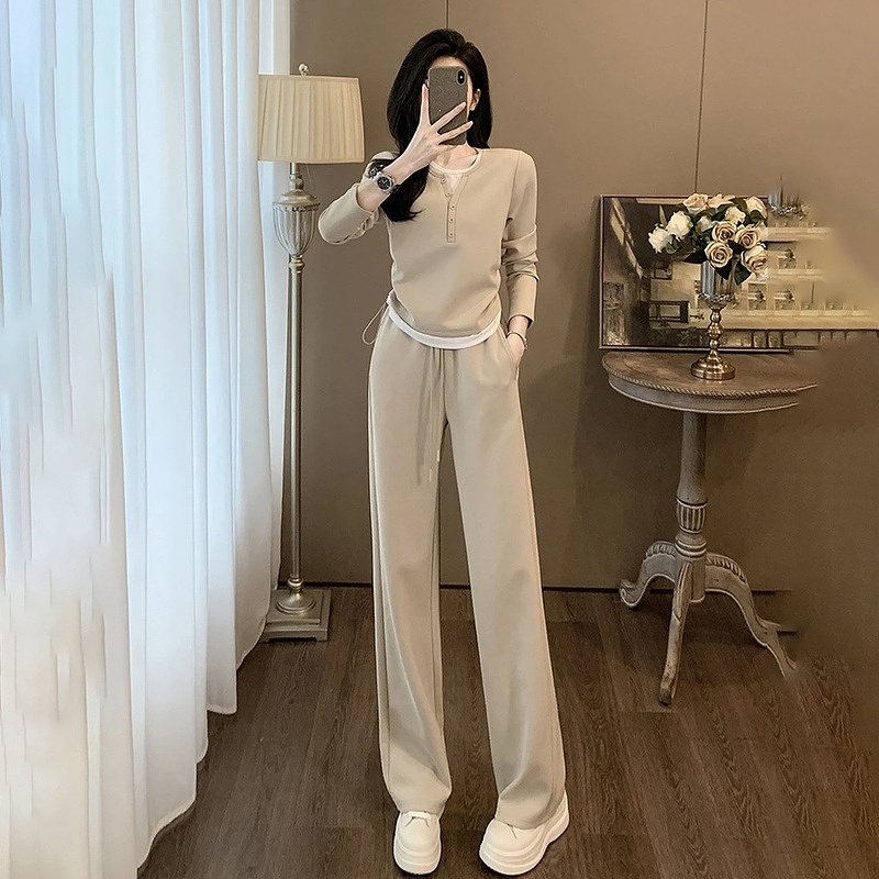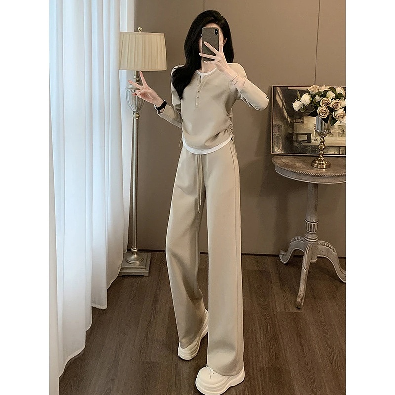 洋气减龄休闲时尚套装女装秋季设计感假两件长袖上衣阔腿裤两件套