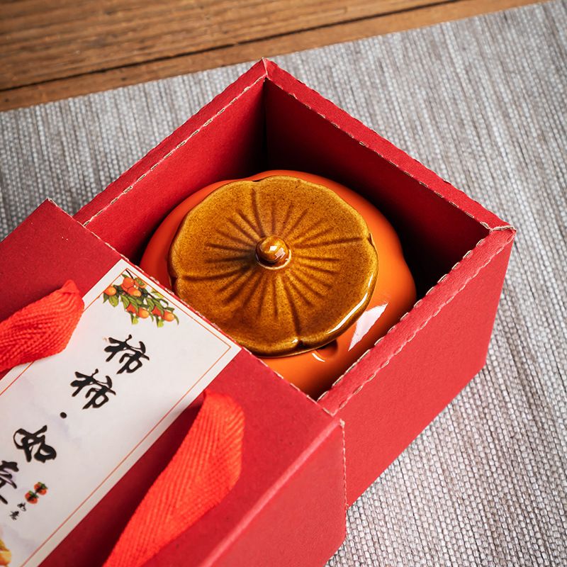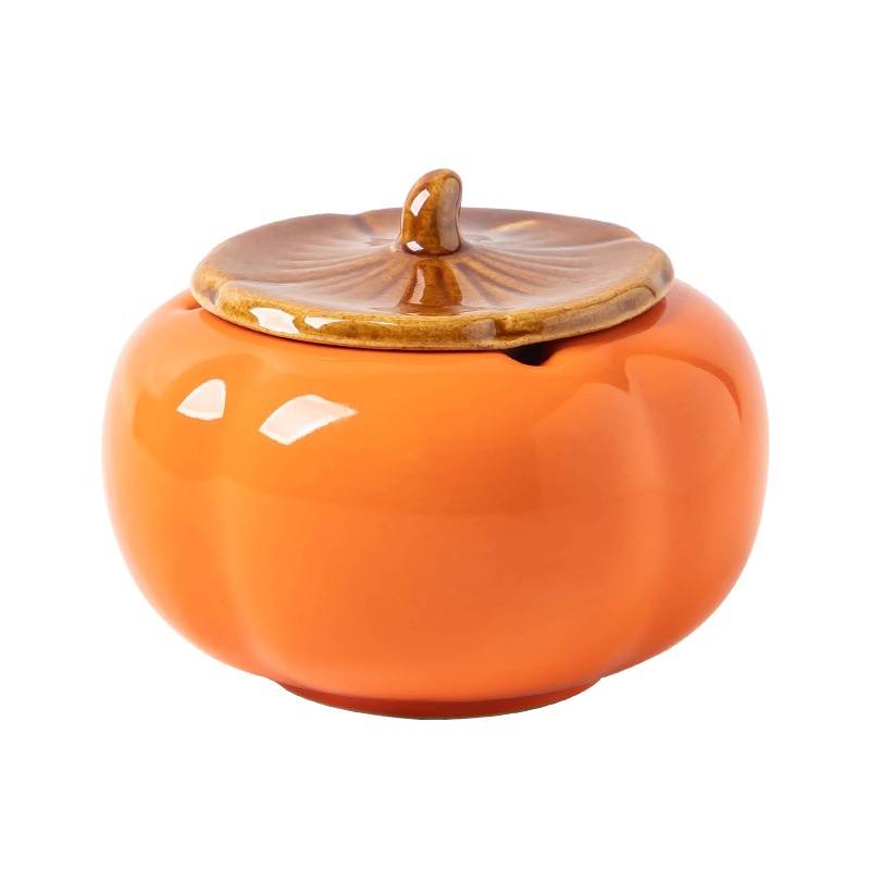 柿子烟灰缸灰飞陶瓷盖烟味客厅潮流小号防带个性家用烟缸创意摆件