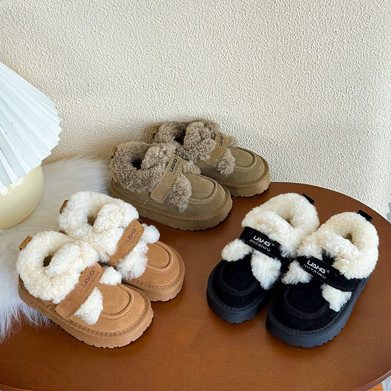 儿童雪地靴真皮2025冬季新款女童保暖棉靴男童加绒加厚大棉毛毛鞋