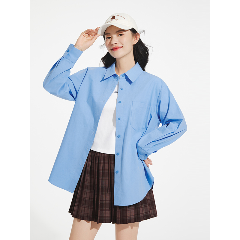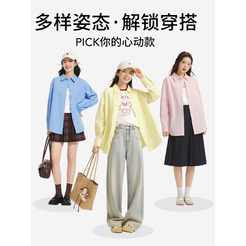 热风女士长袖衬衫2025年秋季新款基础款长袖衬衣马克龙色内搭上衣