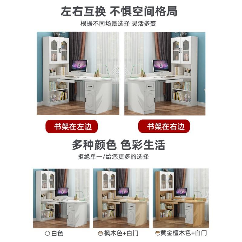 学生写字桌实木儿童学习桌带书架转角书桌书柜一体家用电脑桌组合