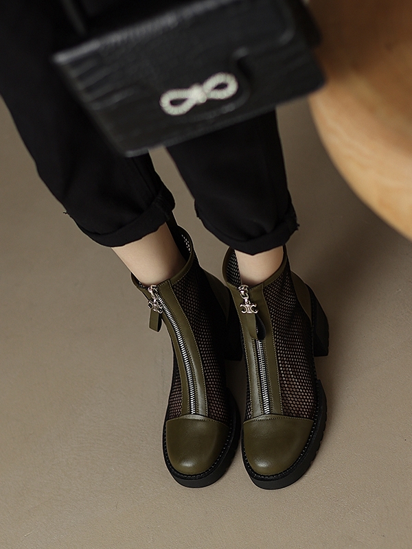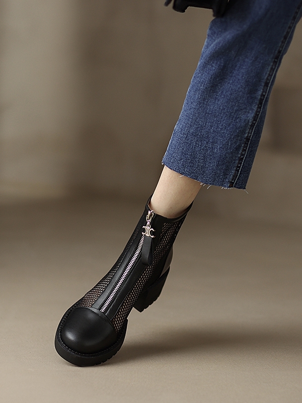 2024新款网靴镂空马丁靴夏季薄款女短靴春款透气网面粗跟高跟凉靴