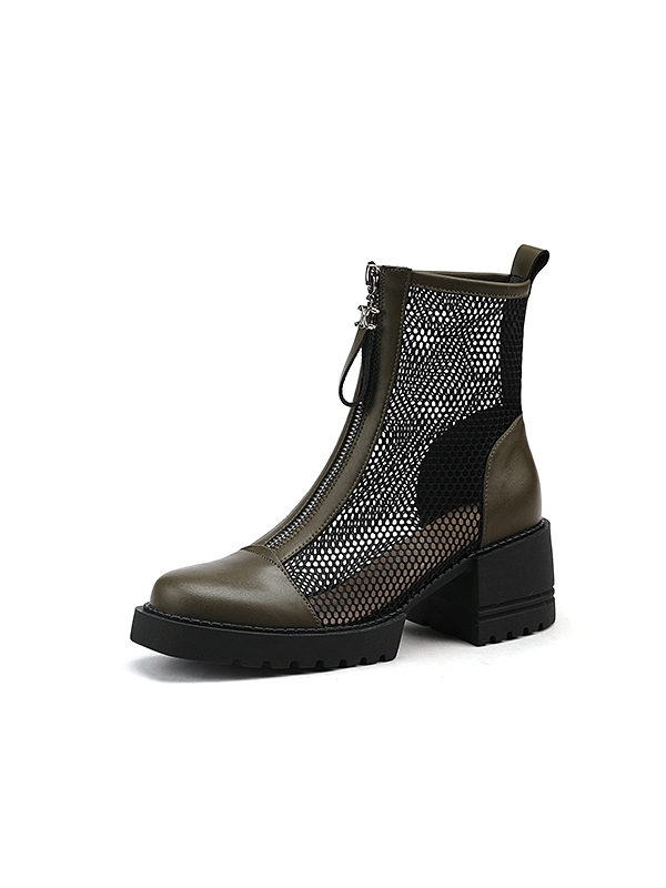 网靴镂空夏季薄款粗跟马丁靴凉靴