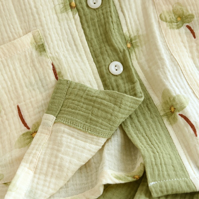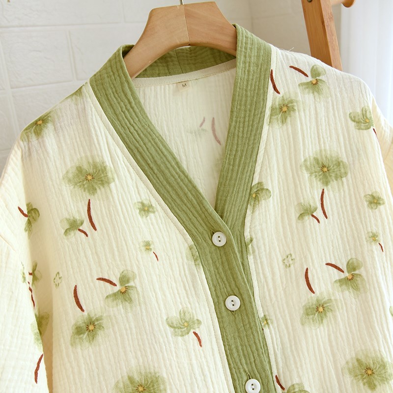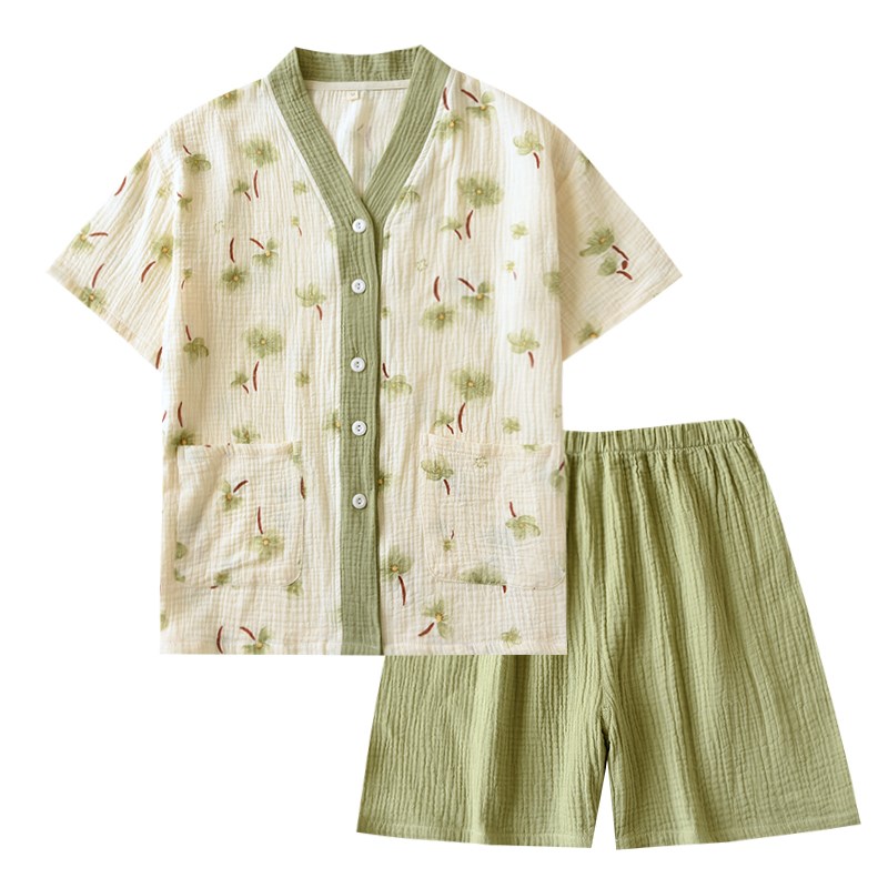 日系睡衣女e夏纯棉水洗棉纱布短袖短裤日式简约V领薄款和服家居服