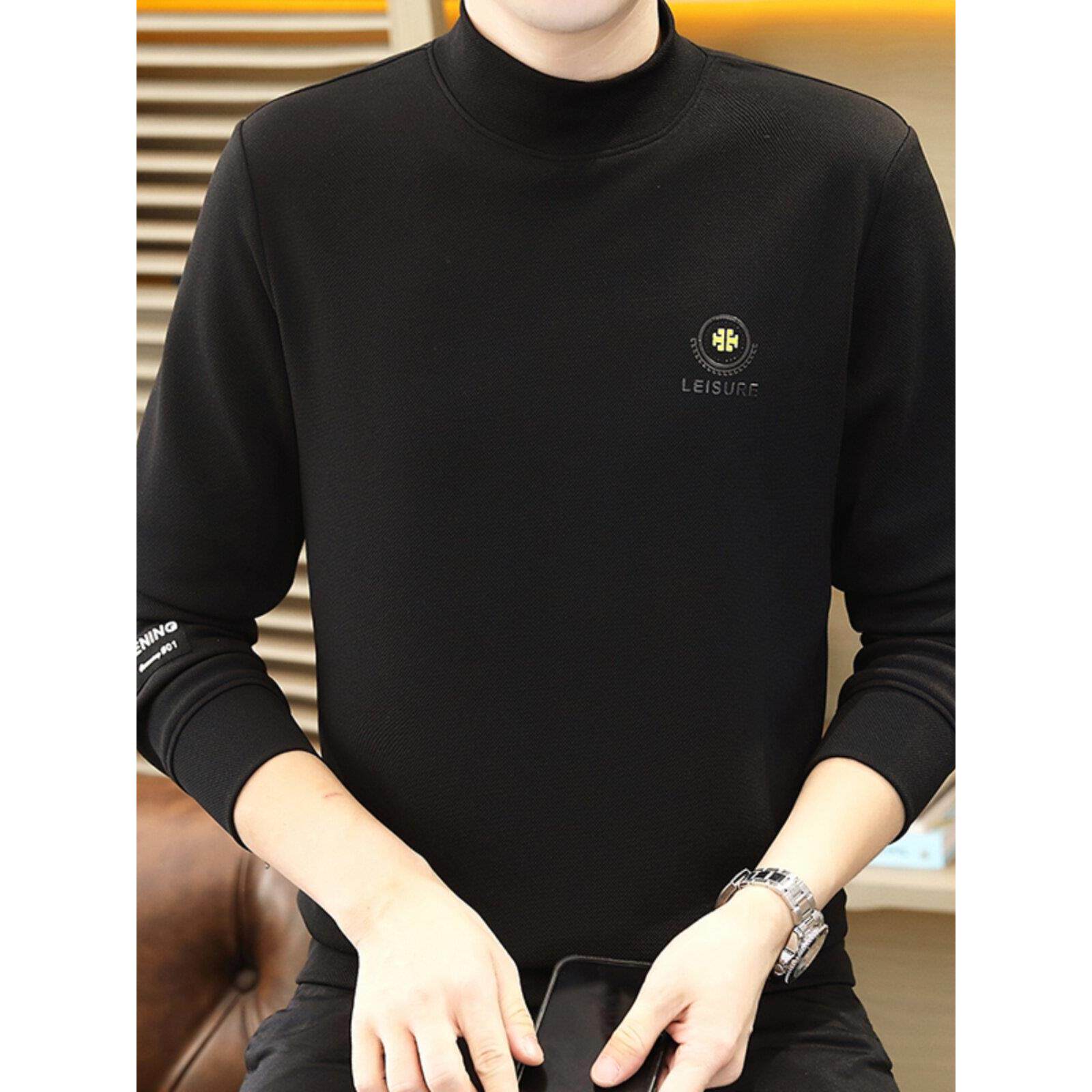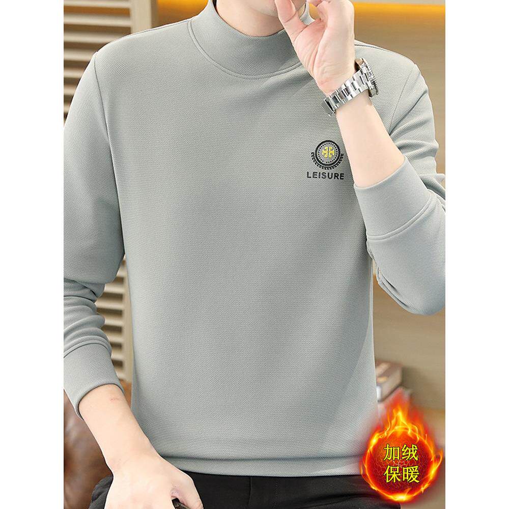 香港半高领打底衫男士秋冬季加绒长袖内搭保暖上衣男中领卫衣秋衣