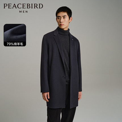 【商场同款】太平鸟男装 单排扣西装领深灰毛呢大衣男B1AAD4212