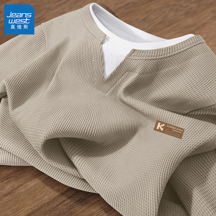 真维斯男士t恤长袖春季华夫格圆领打底衫男款2026新款宽松衣服男Q