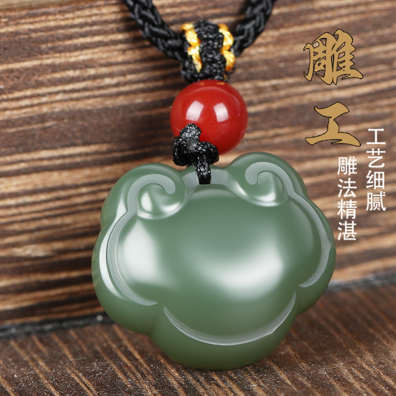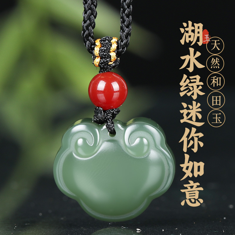 唐今玉和田玉青海料湖水绿平安锁如意宝宝长命锁儿童生日礼物