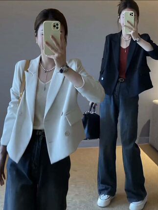 正品短款高级感宽松小西装外套女2025秋装新款设计感休闲西服上衣