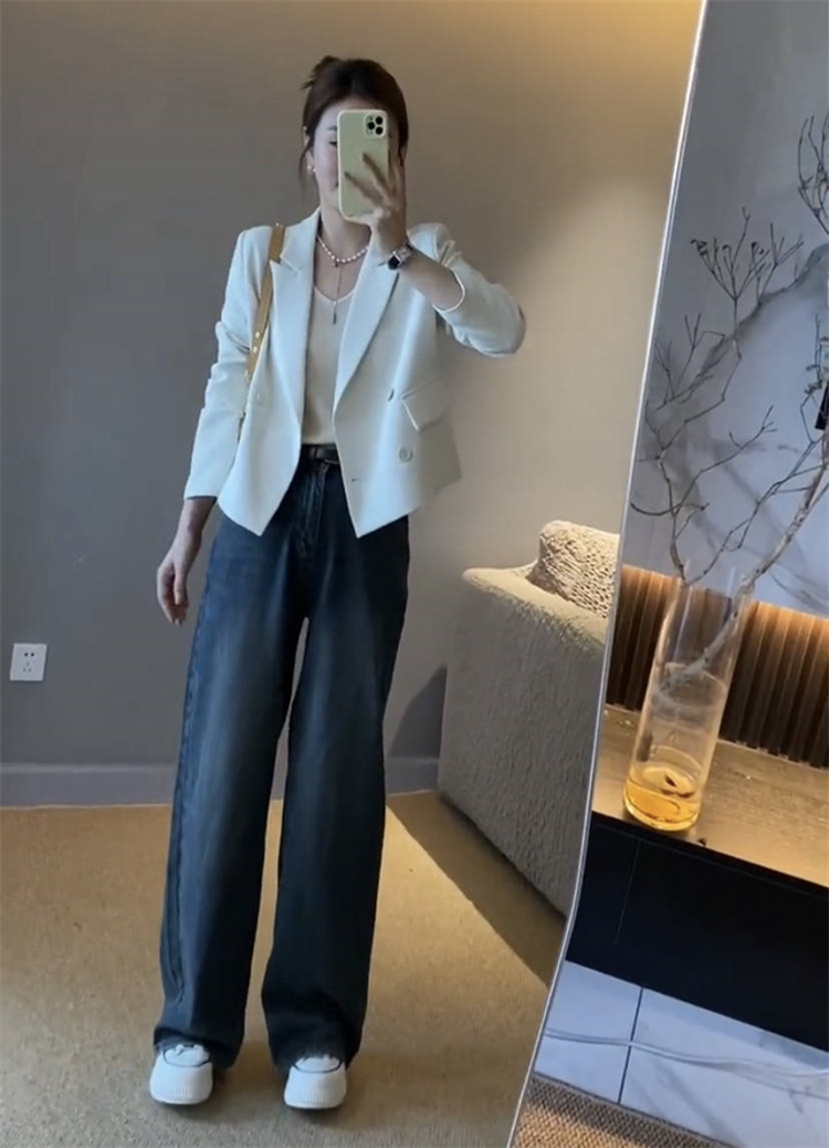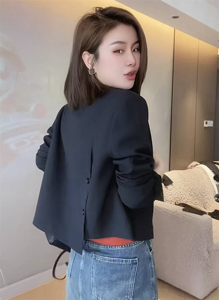 复古时尚宽松后开叉纽扣西装外套