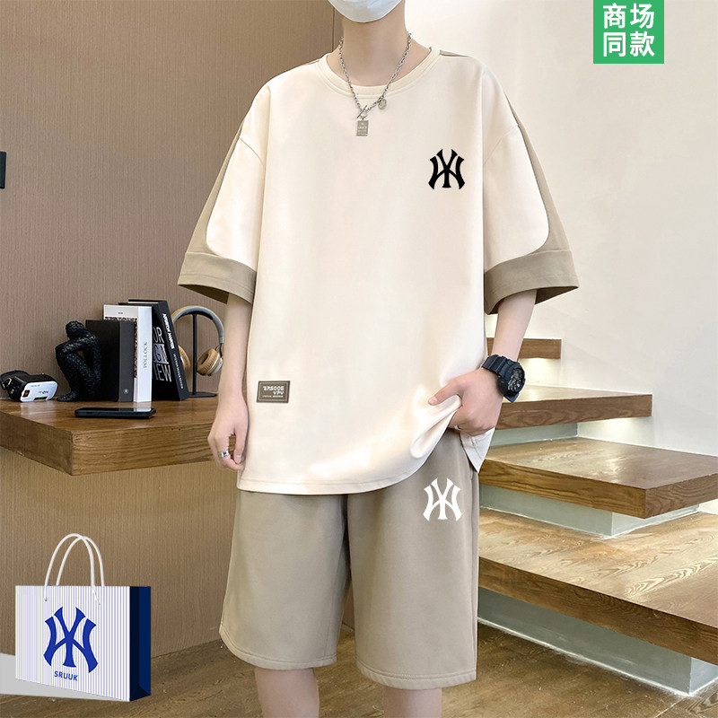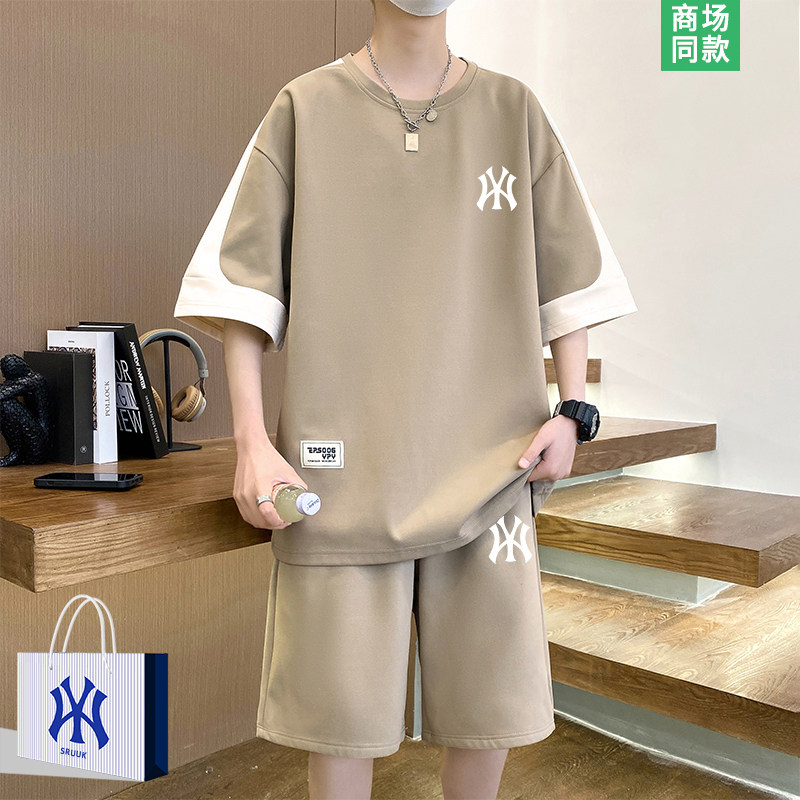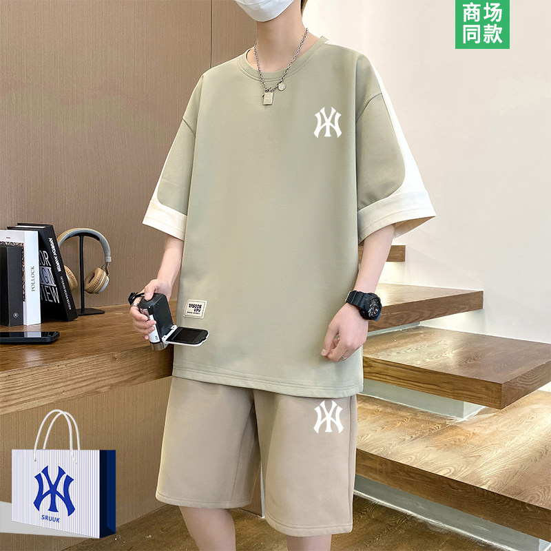 撞色短袖运动套装男士潮牌