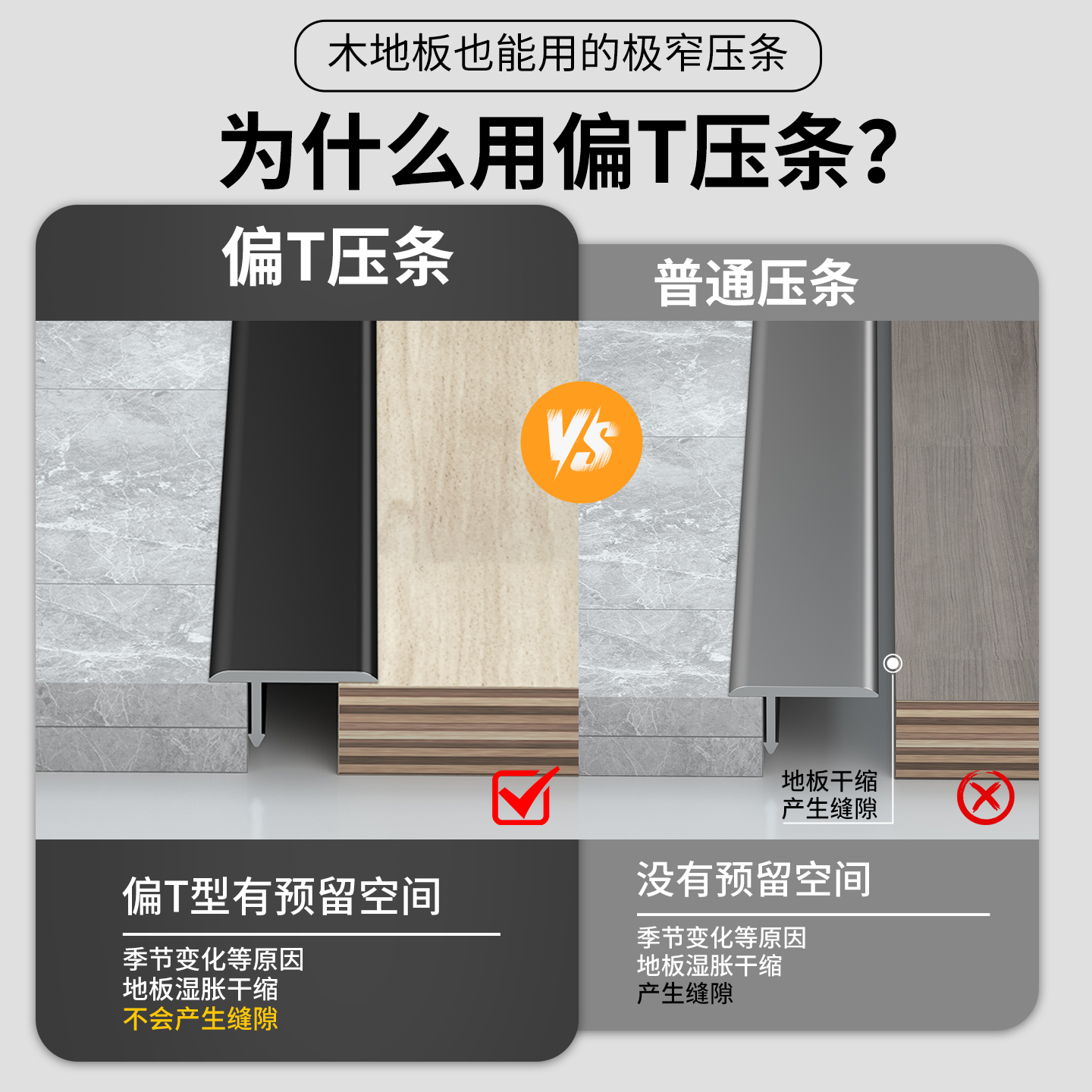 铝合金偏t型收口条极窄嵌入式瓷砖收边条过门石木地板压边条压条