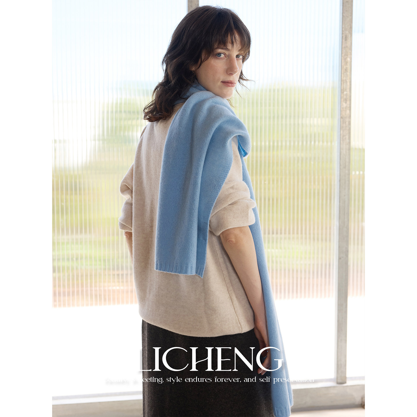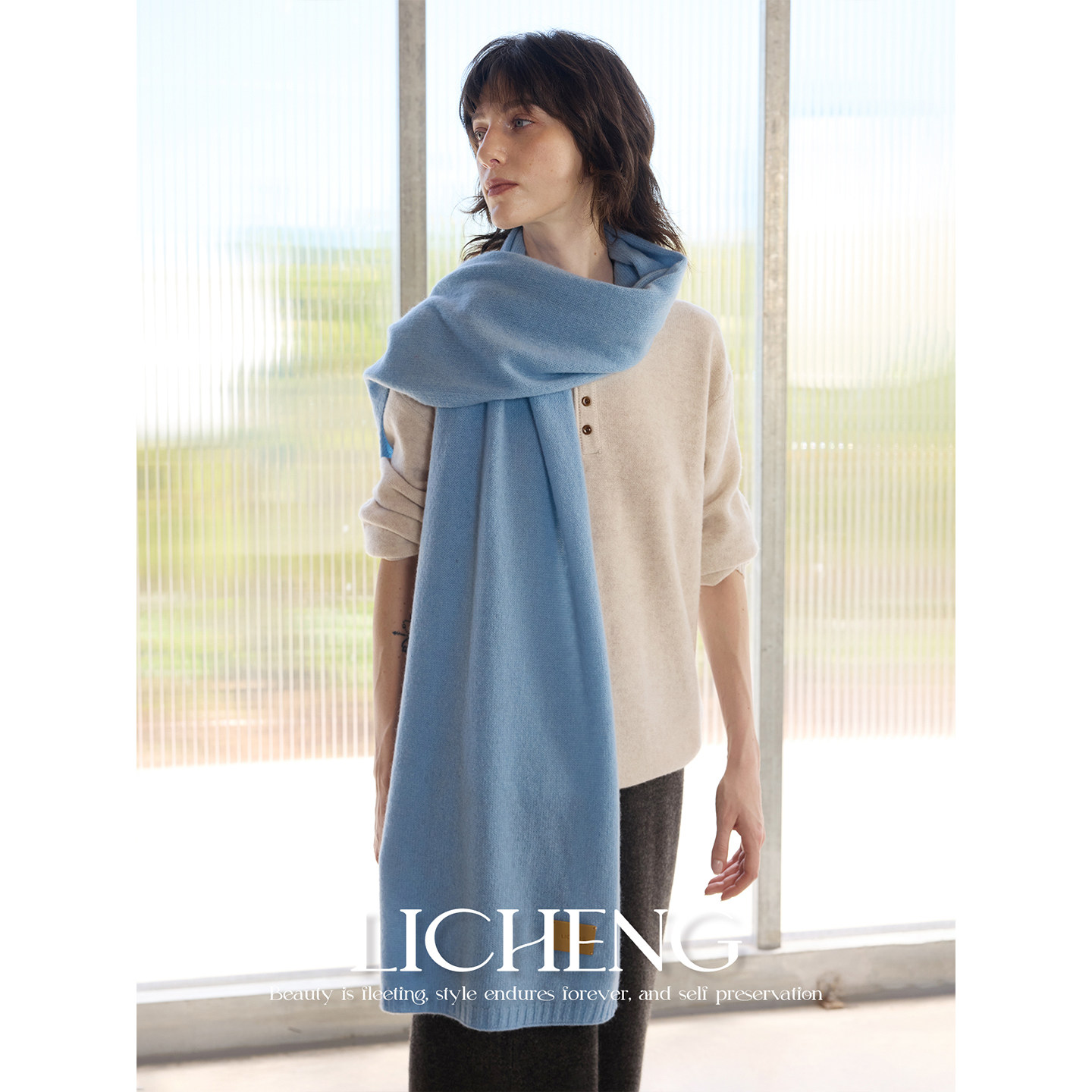 礼诚 北欧冰岛蓝色100%羊毛围巾女秋冬百搭护颈户外保暖围脖披肩