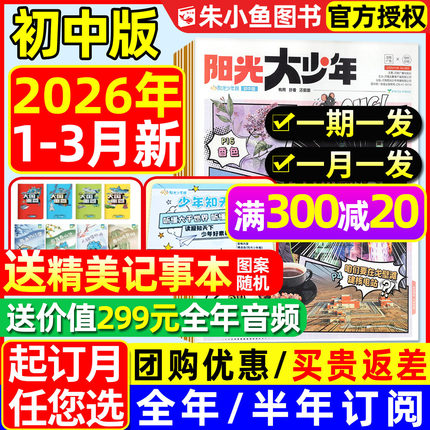 【2026年1-3月新/送赠品】阳光大少年初中版全年/半年订阅/2025秋冬季合订本/中学生中考作文阳光少年报纸小学新闻故事书杂志过刊