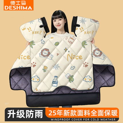 德士马冬季挡风被电动车挡风遮雨罩一体通用防水防晒罩电瓶车护腿