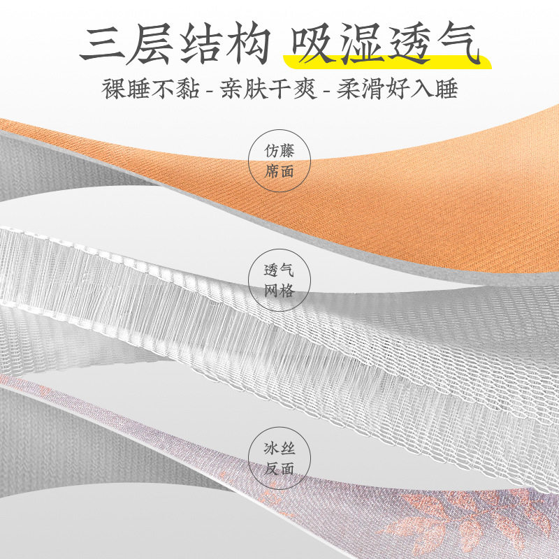 远梦家纺席子单双人大床双面凉席冰麻席冬夏两用咖色家用藤席透气