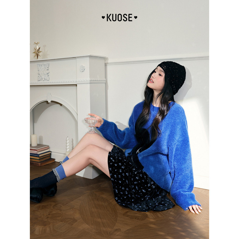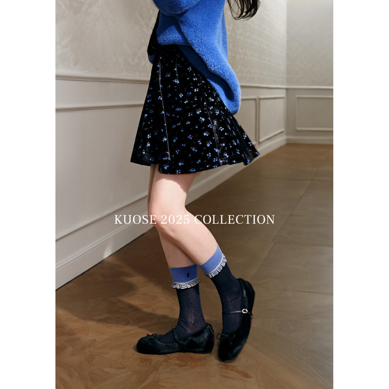 阔色黑色碎花丝绒裙短裙子a字半身裙2025秋冬季新款女小个子半裙