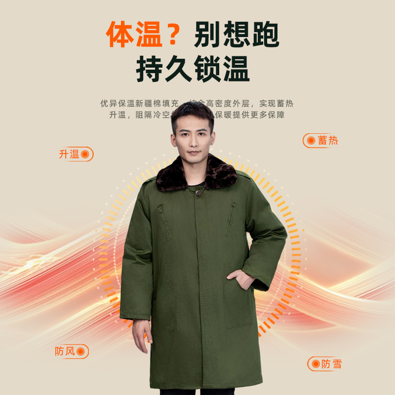 老款军大衣加绒加厚东北长款大棉袄冷库钓鱼保安防寒棉大衣男女