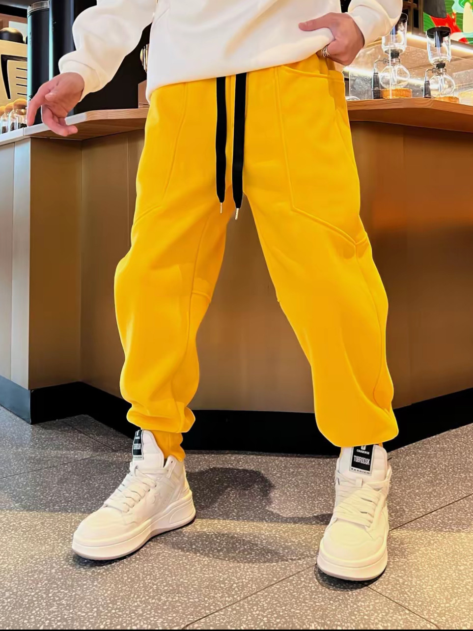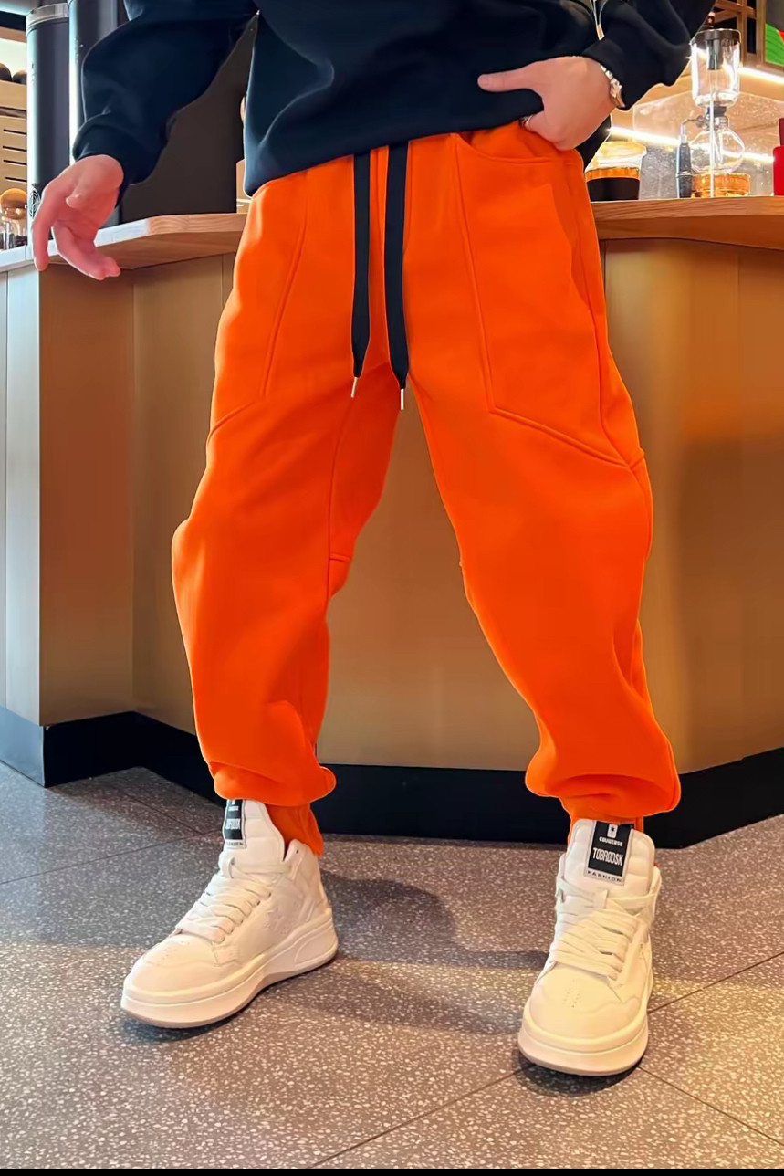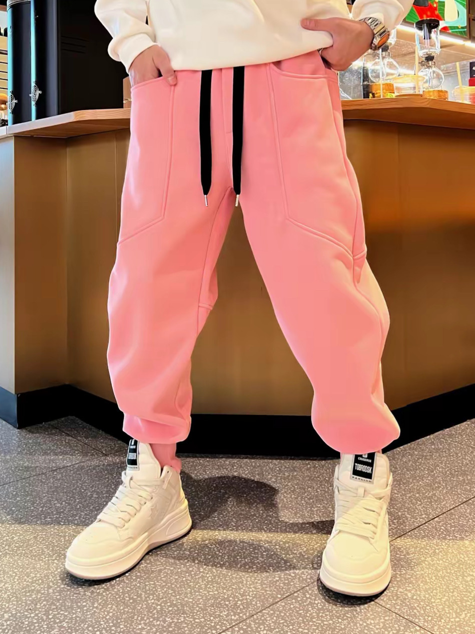 新品时尚潮流多巴胺穿搭情侣款简约个性宽松加绒加厚束脚休闲卫裤
