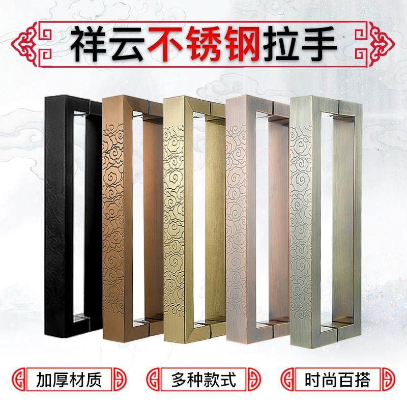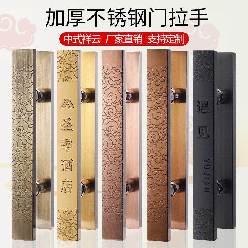 中式大门把手玻璃门把手定制刻字不锈钢加厚木门祥云拉手方管大拉